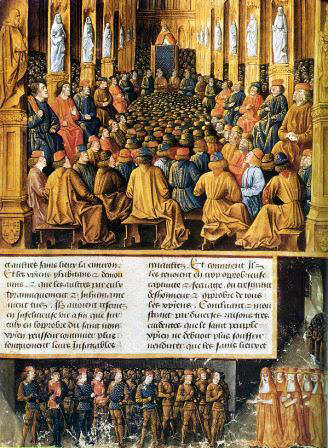 "Most beloved brethren: Urged by necessity, I, Urban, by the permission of God chief bishop and prelate over the whole world, have come into these parts as an ambassador with a divine admonition to you, the servants of God. I hoped to find you as faithful and as zealous in the service of God as I had supposed you to be. But if there is in you any deformity or crookedness contrary to God's law, with divine help I will do my best to remove it. For God has put you as stewards over his family to minister to it. Happy indeed will you be if he finds you faithful in your stewardship. You are called shepherds; see that you do not act as hirelings. But be true shepherds, with your crooks always in your hands. Do not go to sleep, but guard on all sides the flock committed to you. For if through your carelessness or negligence a wolf carries away one of your sheep, you will surely lose the reward laid up for you with God. And after you have been bitterly scourged with remorse for your faults, you will be fiercely overwhelmed in hell, the abode of death. For according to the gospel you are the salt of the earth. (Mt 5:13) But if you fall short in your duty, how, it may be asked, can it be salted? O how great the need of salting! It is indeed necessary for you to correct with the salt of wisdom this foolish people which is so devoted to the pleasures of this world, lest the Lord, when He may wish to speak to them, find them putrefied by their sins unsalted and stinking. For if He shall find worms, that is, sins, In them, because you have been negligent in your duty, He will command them as worthless to be thrown into the abyss of unclean things. And because you cannot restore to Him His great loss, He will surely condemn you and drive you from His loving presence. But the man who applies this salt should be prudent, provident, modest, learned, peaceable, watchful, pious, just, equitable, and pure. For how can the ignorant teach others? How can the licentious make others modest? And how can the impure make others pure? If anyone hates peace, how can he make others peaceable? Or if anyone has soiled his hands with baseness, how can he cleanse the impurities of another? We read also that if the blind lead the blind, both will fall into the ditch. (Mt 15:14) ; But first correct yourselves, in order that, free from blame, you may be able to correct those who are subject to you. If you wish to be the friends of God, gladly do the things which you know will please Him. You must especially let all matters that pertain to the church be controlled by the law of the church. And be careful that simony does not take root among you, lest both those who buy and those who sell [church offices] be beaten with the scourges of the Lord through narrow streets and driven into the place of destruction and confusion. Keep the church and the clergy in all its grades entirely free from the secular power. See that the tithes that belong to God are faithfully paid from all the produce of the land; let them not be sold or withheld. If anyone seizes a bishop let him be treated as an outlaw. If anyone seizes or robs monks, or clergymen, or nuns, or their servants, or pilgrims, or merchants, let him be anathema [that is, cursed]. Let robbers and incendiaries and all their accomplices be expelled from the church and anathematized. If a man who does not give a part of his goods as alms is punished with the damnation of hell, how should he be punished who robs another of his goods? For thus it happened to the rich man in the gospel (Lk 16:19) he was not punished because he had stolen the goods of another, but because he had not used well the things which were his. "You have seen for a long time the great disorder in the world caused by these crimes. It is so bad in some of your provinces, I am told, and you are so weak in the administration of justice, that one can hardly go along the road by day or night without being attacked by robbers; and whether at home or abroad one is in danger of being despoiled either by force or fraud. Therefore it is necessary to reenact the truce, as it is commonly called, which was proclaimed a long time ago by our holy fathers. I exhort and demand that you, each, try hard to have the truce kept in your diocese. And if anyone shall be led by his cupidity or arrogance to break this truce, by the authority of God and with the sanction of this council he shall be anathematized." After these and various other matters had been attended to, all who were present, clergy and people, gave thanks to God and agreed to the pope's proposition. They all faithfully promised to keep the decrees. Then the pope said that in another part of the world Christianity was suffering from a state of affairs that was worse than the one just mentioned. He continued: "Although, O sons of God, you have promised more firmly than ever to keep the peace among yourselves and to preserve the rights of the church, there remains still an important work for you to do. Freshly quickened by the divine correction, you must apply the strength of your righteousness to another matter which concerns you as well as God. For your brethren who live in the east are in urgent need of your help, and you must hasten to give them the aid which has often been promised them. For, as the most of you have heard, the Turks and Arabs have attacked them and have conquered the territory of Romania [the Byzantine Empire] as far west as the shore of the Mediterranean and the Hellespont, which is called the Arm of St. George. They have occupied more and more of the lands of those Christians, and have overcome them in seven battles. They have killed and captured many, and have destroyed the churches and devastated the empire. If you permit them to continue thus for a while with impurity, the faithful of God will be much more widely attacked by them. On this account I, or rather the Lord, beseech you as Christ's heralds to publish this everywhere and to persuade all p