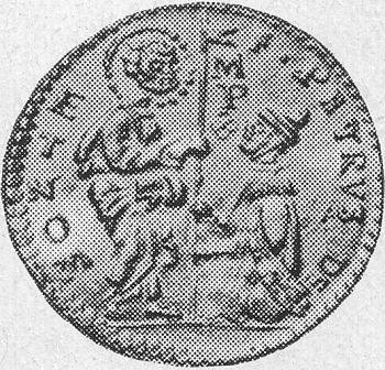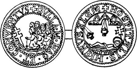 St. John (probably as the Vicar of Christ) is symbolically depicted on coins of the Order of the beginning 16th century as a feudal lord, who enfeoffs the Grandmaster with banners,